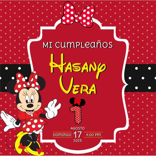 Hasany cumple su primer añito y Minnie Mouse no quiere que faltes a esta celebración tan especial.
